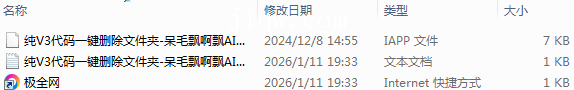 【极全网】纯V3代码一键删除文件夹-呆毛飘啊飘AI代上传iAPP源码目录1个子文件夹0个文件3个