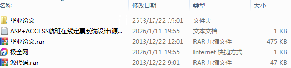 【极全网】ASP+ACCESS航班在线定票系统设计(源代码+论文)-本地下载目录1个子文件夹1个文件4个