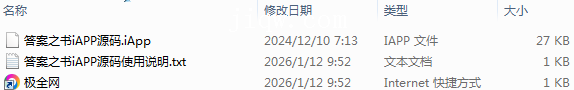 极全网】答案之书iAPP源码目录1个子文件夹0个文件3个