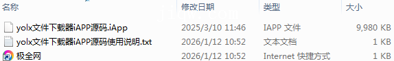 极全网】yolx文件下载器iAPP源码目录1个子文件夹0个文件3个