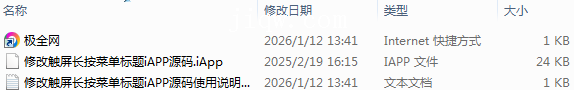 极全网】修改触屏长按菜单标题iAPP源码目录1个子文件夹0个文件3个