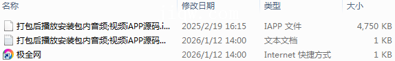 【极全网】打包后播放安装包内音频;视频iAPP源码目录1个子文件夹0个文件3个