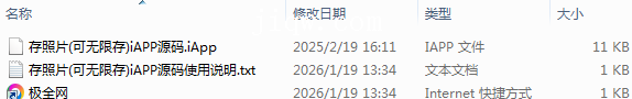 【极全网】存照片(可无限存)iAPP源码目录1个子文件夹0个文件3个