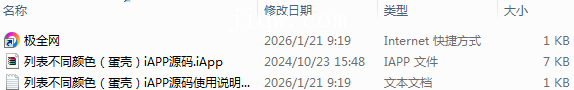 【极全网】列表不同颜色(蛋壳)iAPP源码目录1个子文件夹0个文件3个