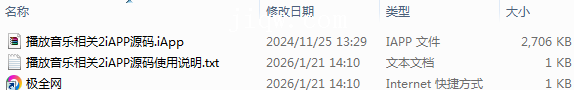 【极全网】播放音乐相关2iAPP源码目录1个子文件夹0个文件3个