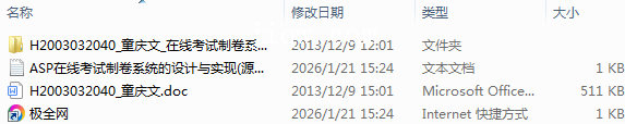 【极全网】ASP在线考试制卷系统的设计与实现(源代码+论文)-本地下载目录1个子文件夹1个文件3个