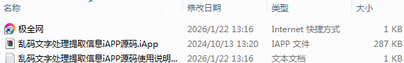 【极全网】乱码文字处理提取信息iAPP源码目录1个子文件夹0个文件3个