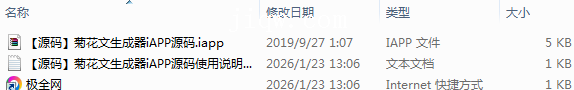 【极全网】【源码】菊花文生成器iAPP源码目录1个子文件夹0个文件3个