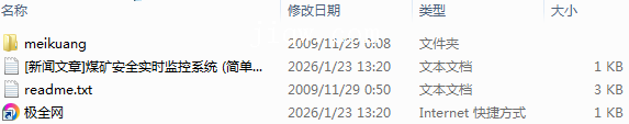 【极全网】[新闻文章]煤矿安全实时监控系统 (简单新闻发布系统)_meikuang-本地下载目录1个子文件夹1个文件3个
