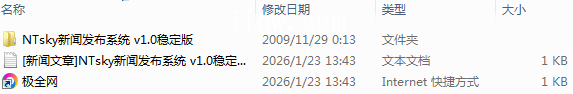 【极全网】[新闻文章]NTsky新闻发布系统 v1.0稳定版_18655-本地下载目录1个子文件夹1个文件2个