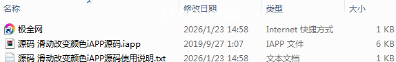 【极全网】源码 滑动改变颜色iAPP源码目录1个子文件夹0个文件3个