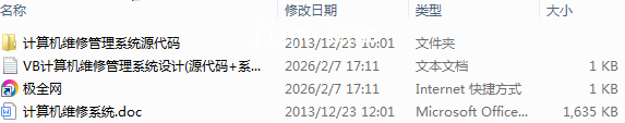 【极全网】VB计算机维修管理系统设计(源代码+系统)-本地下载目录1个子文件夹1个文件3个