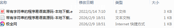 【极全网】带有字符串的程序易语言源码-本地下载目录1个子文件夹0个文件3个