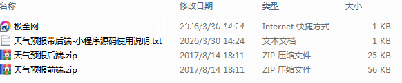 极全网】天气预报带后端-小程序源码目录1个子文件夹0个文件4个