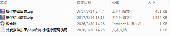 极全网】外卖搭伴拼团php后端-小程序源码目录1个子文件夹0个文件4个