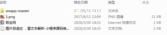 极全网】图片自适应 ,富文本解析-小程序源码目录1个子文件夹1个文件3个