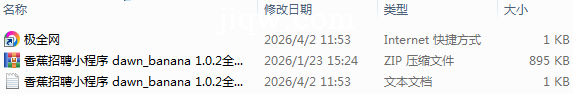 极全网】香蕉招聘小程序 dawn_banana 1.0.2全开源版目录1个子文件夹0个文件3个