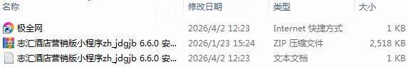 极全网】志汇酒店营销版小程序zh_jdgjb 6.6.0 安装更新一体包目录1个子文件夹0个文件3个