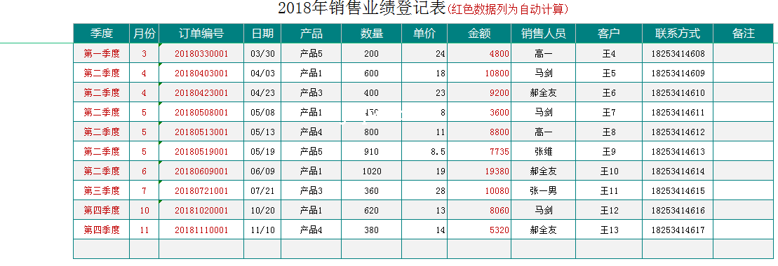极全网】销售业绩统计(自动汇总、图表分析)