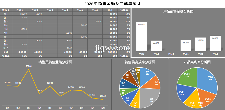 年销售金额及完成率统计-修改-表格-极全网