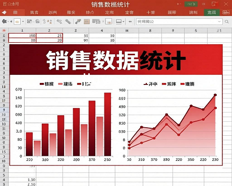 标题:销售统计簇状柱形图折线图excel模板红-表格