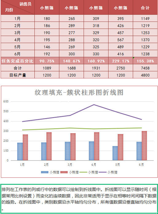 销售统计簇状柱形图折线图excel模板红-表格
