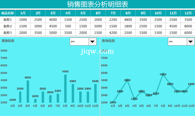 标题:销售图表明细分析表-表格