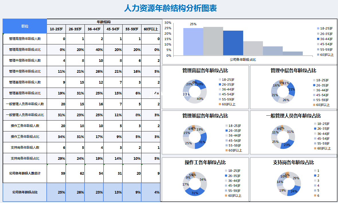 极全网】17人力资源年龄结构分析图表-表格