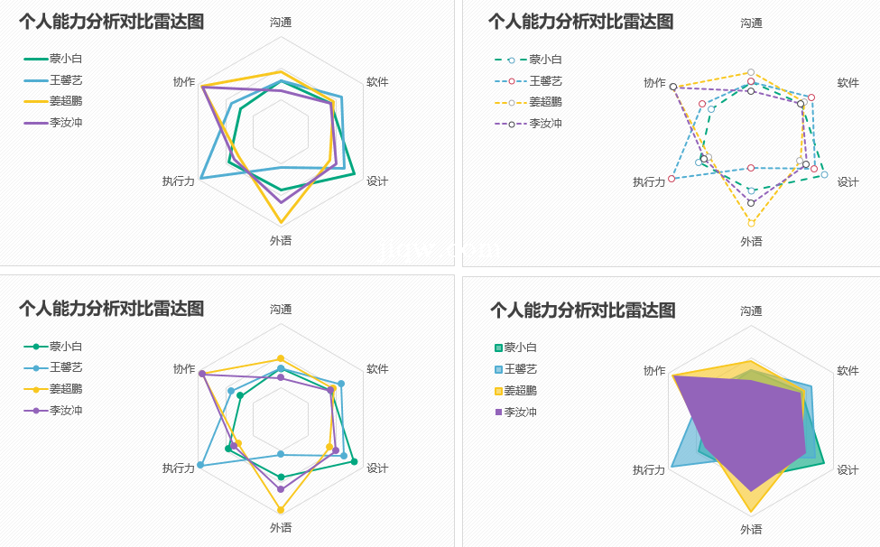 极全网】19个人能力分析对比雷达图-表格