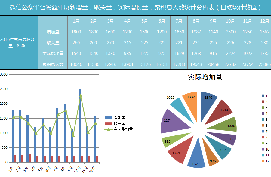 粉丝年度统计分析-图表-极全网