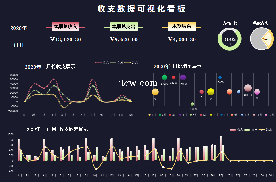 收支明细表-收支数据可视化看板-图表-极全网