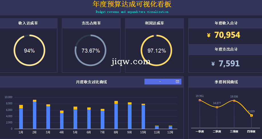 年度预算达成可视化看板-图表-极全网