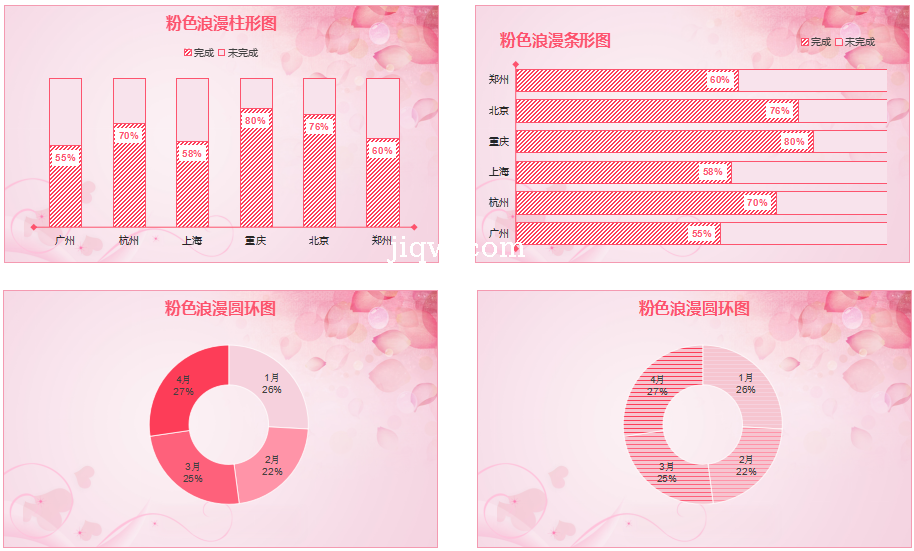 极全网】8粉色占比分析柱形图圆环图 图表-图表
