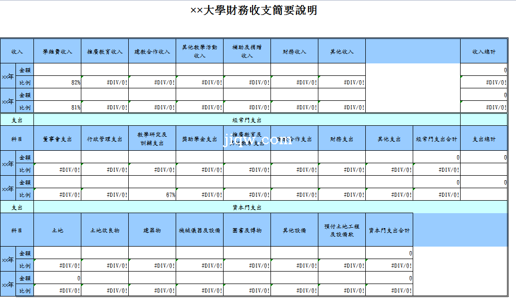 大學財務收支簡要說明-Excel表格
