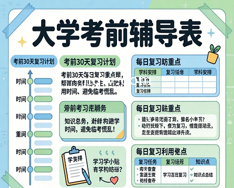 标题:大学考前辅导表-Excel表格