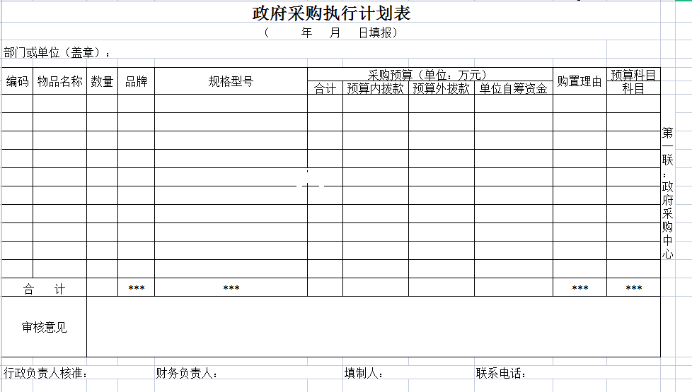 政府采购执行计划表-Excel表格