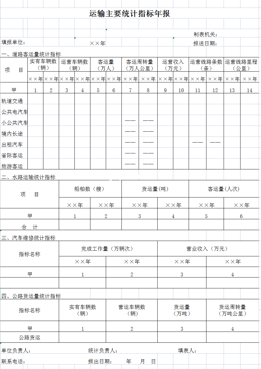 运输主要统计指标年报-Excel表格