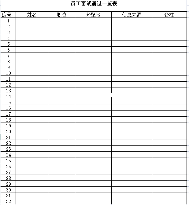 标题:员工面试通过一览表-Excel表格