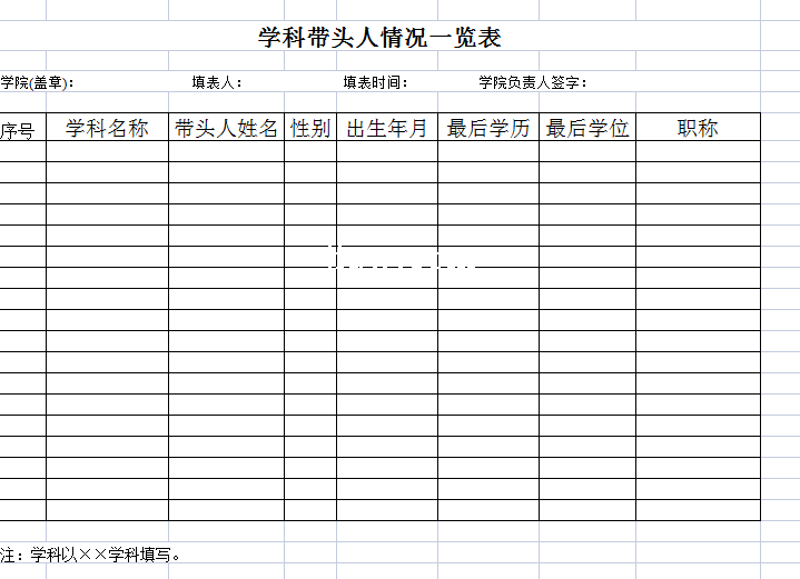 学院学科带头人统计表-Excel表格