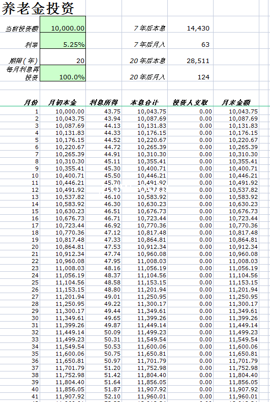 养老金投资计算器-Excel表格