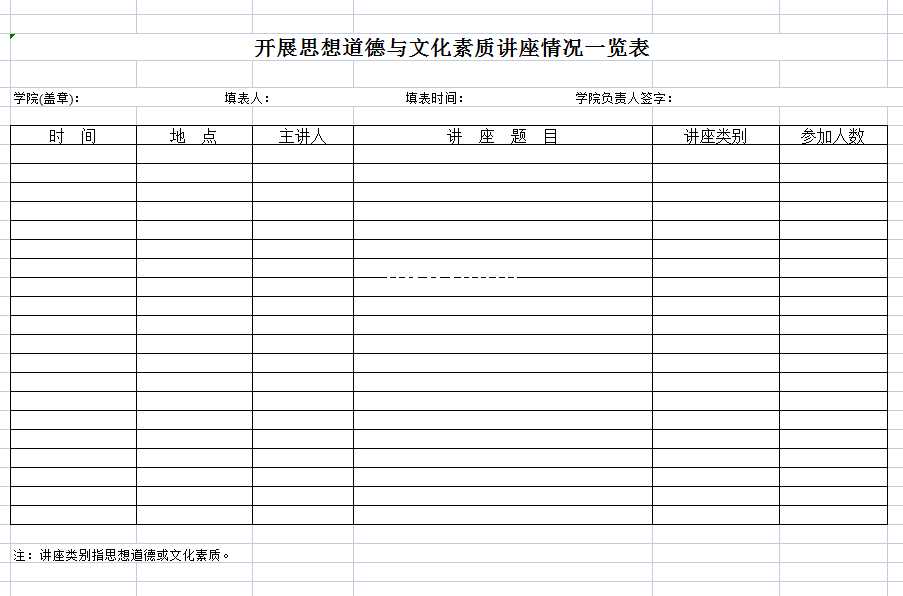 【极全网】学院开展思想道德与文化素质讲座情况一览表-Excel表格
