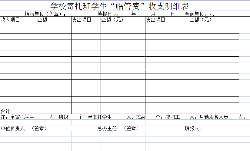 学校寄托班学生“临管费”收支明细表-Excel表格