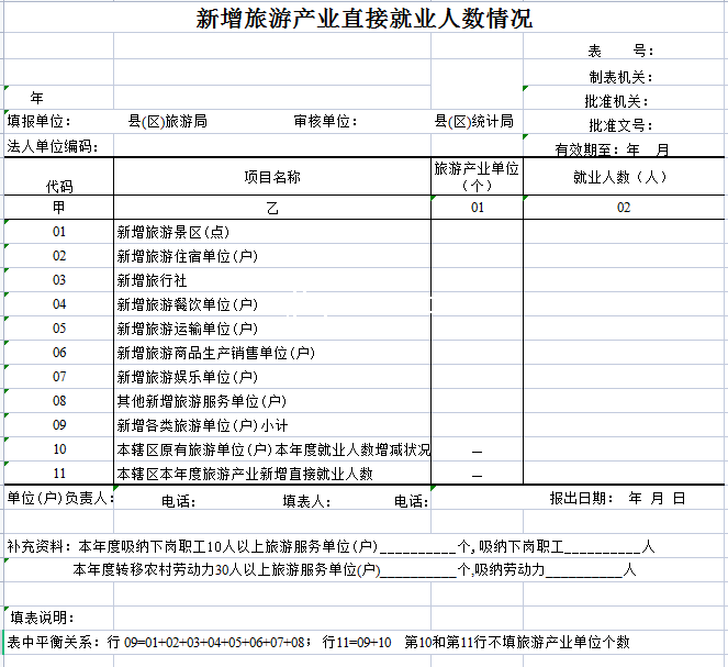 标题:新增旅游产业直接就业人数情况-Excel表格