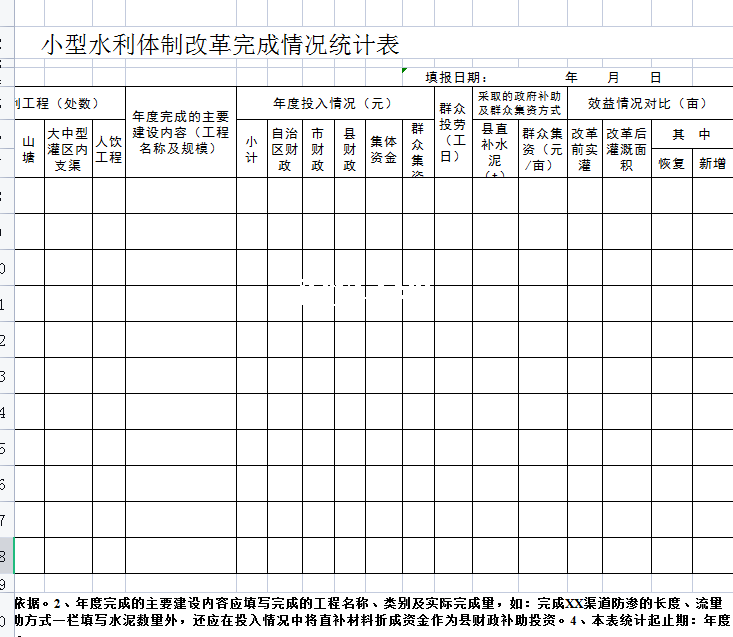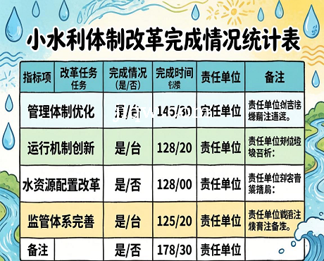 标题:小型水利体制改革完成情况统计表-Excel表格