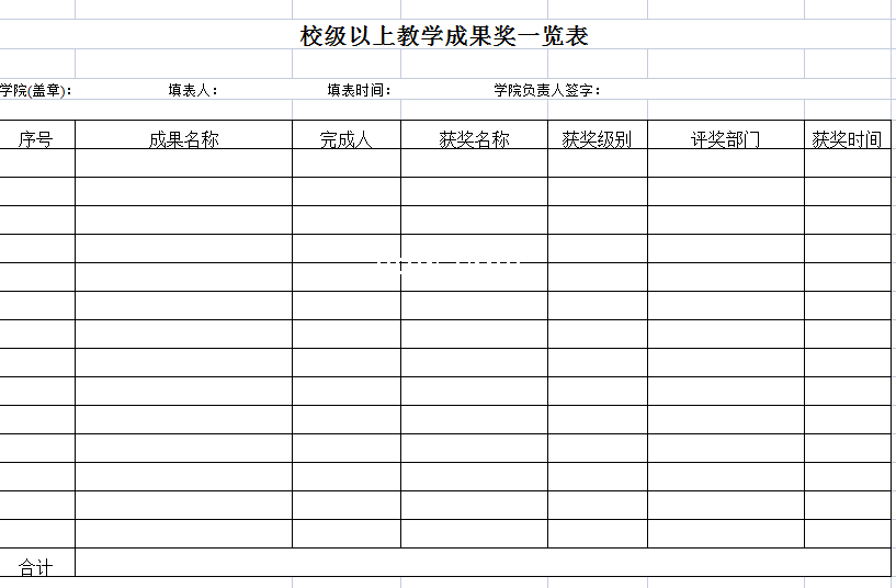 标题:校级以上教学成果奖一览表-Excel表格