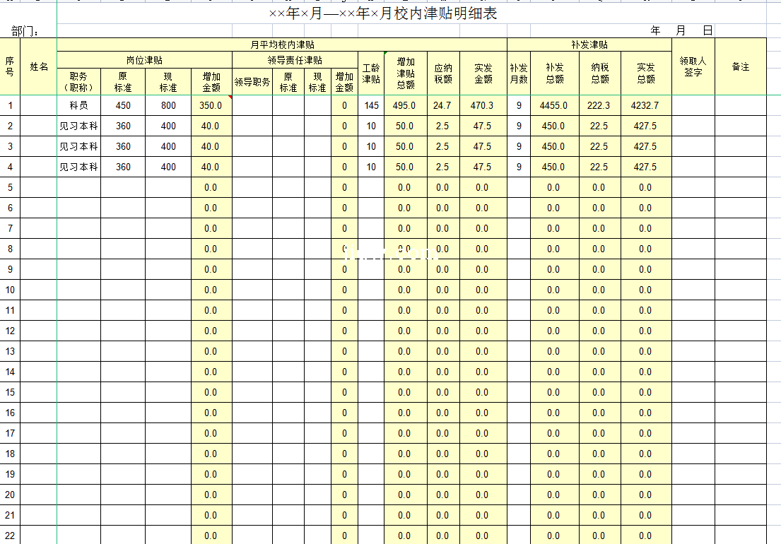 校内津贴明细表-Excel表格