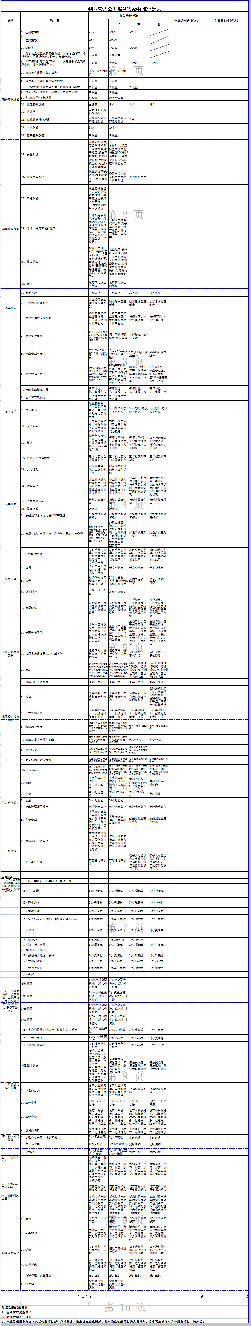 标题:物业管理公共服务等级标准评定表-Excel表格
