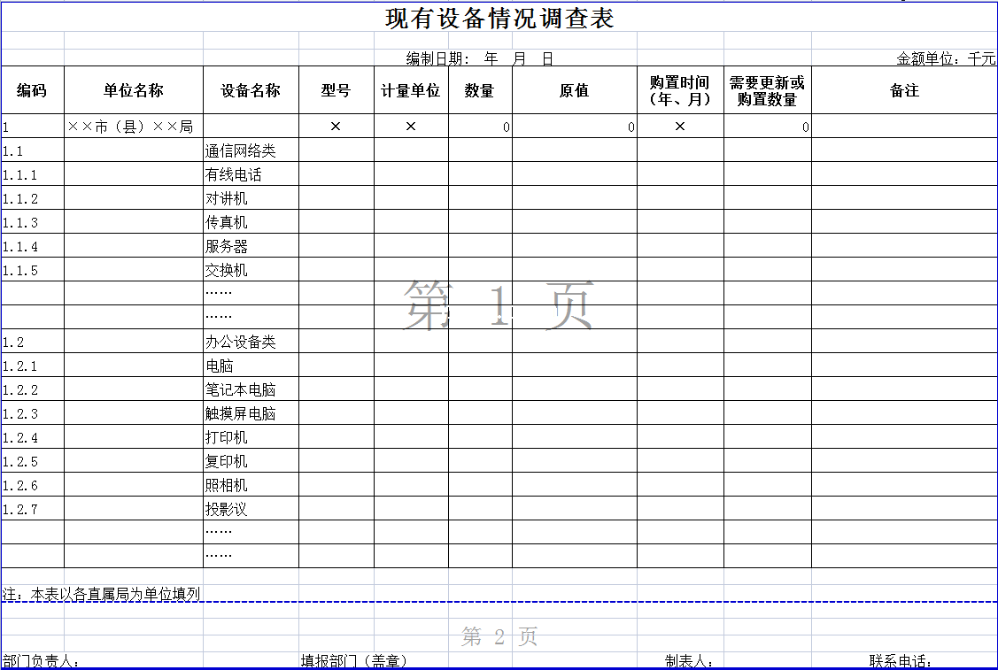 标题:现有设备情况调查表-Excel表格