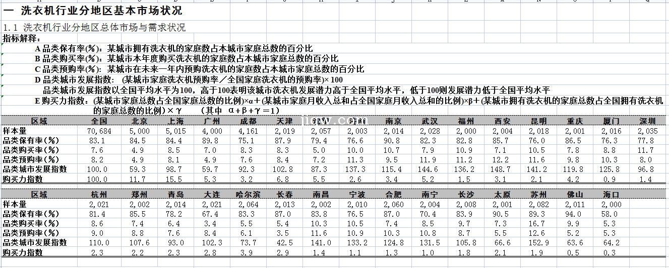 标题:洗衣机行业分地区基本市场状况-Excel表格