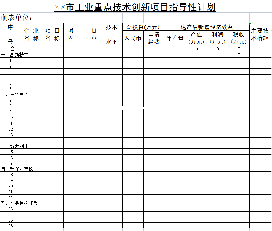 标题:市工业重点技术创新项目指导性计划-Excel表格